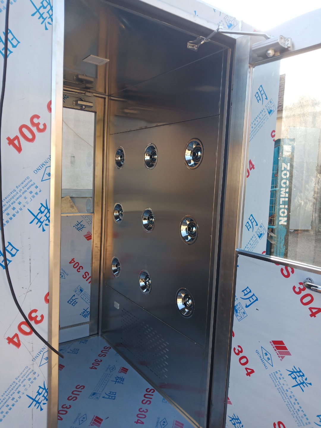 風淋室不同的材質會直接影響到風淋室價格成本。若車間有酸性氣體或比較潮濕的話,建議選擇全不銹鋼材質風淋室。在同等尺寸與配置情況下,風淋室材質為全砂光不銹與全砂光不銹鋼價格成本大有不 同,所以企業根據自身與工藝要求,選擇購買不同的風淋室。若車間人數不多或在十人以下,則可以考慮使用單人或雙人風淋室,即一次可進入一至二人風淋室;若 超過十人以上的車間,可以考慮使用雙人或多人風淋室。因此在安裝風淋室時需要注意以下幾點問題: