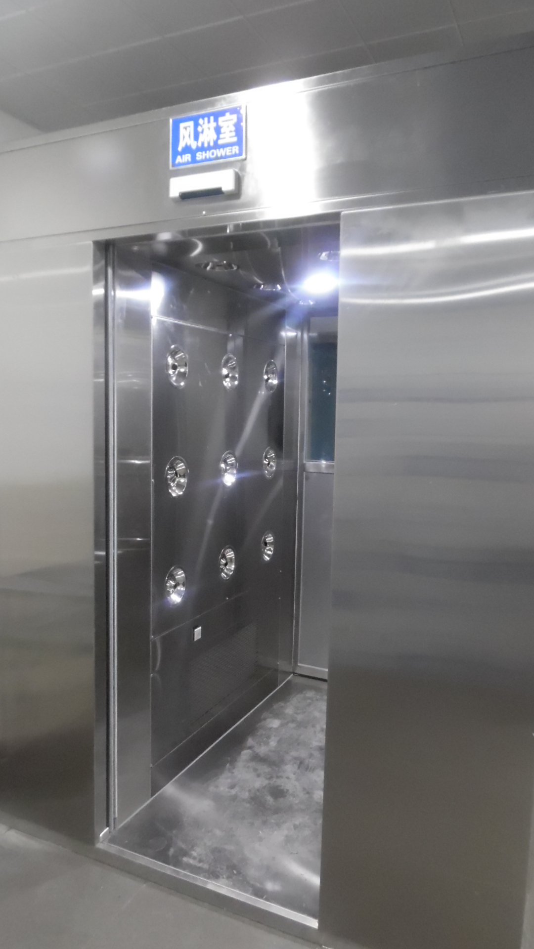 2、風淋室內部循環超強的潔凈氣流,由360度可旋轉噴嘴從各個方向噴射至人身上。