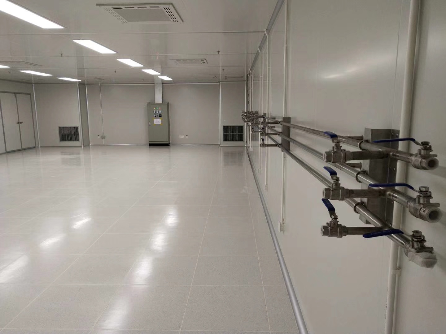 2、雙人雙吹風(fēng)淋室吹淋結(jié)束后,推開(kāi)出門(mén)進(jìn)入潔凈無(wú)塵室。